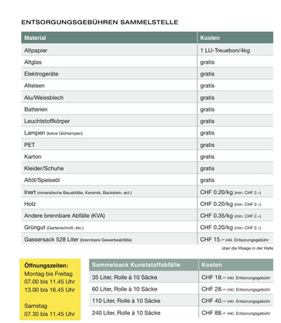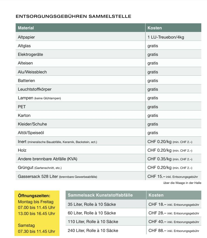 CHF 15.00 / Sack inkl. Entsorgungsgebühr